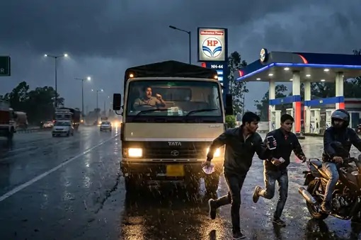 तेज रफ्तार ट्रक की टक्कर से बाइक सवार गंभीर घायल