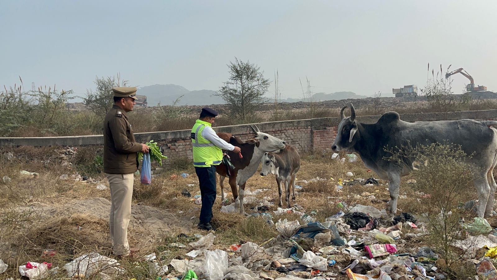 लोहड़ी पर्व पर पंचकूला ट्रैफिक पुलिस ने पशुओ को पहनाई रिफ्लेक्टर बेल्ट, वाहन ...
